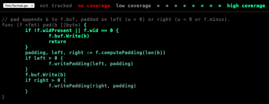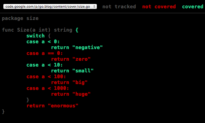 不過,它確實有效,例如,如果您是 gccgo 的使用者,gcov 工具可以為您提供測試覆蓋率資訊。但是,如果您是更常用的 Go 編譯器套件 gc 的使用者,那麼在 Go 1.2 之前您就沒有運氣了。