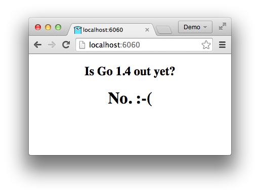 在我們的演示中,我們將使用Go 示例程式碼庫中的outyet程式,這是一個簡單的 Web 伺服器,用於報告 Go 的下一個版本是否已釋出(旨在為isgo1point4.outyet.org等網站提供支援)。它除了標準庫外沒有其他依賴項,並且在執行時不需要額外的資料檔案;對於 Web 伺服器來說,它已經非常簡單了。