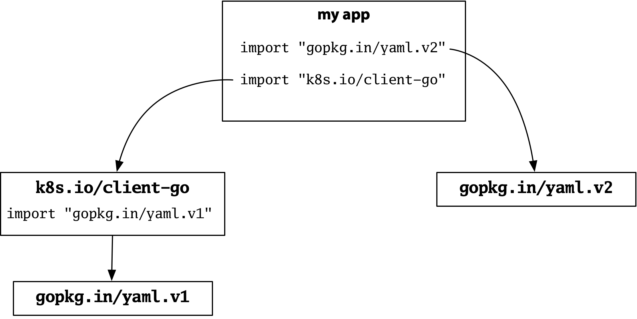 第 1 版和第 2 版具有不相容的 API,但它們也有不同的匯入路徑,因此對於給定匯入指的是哪個版本沒有歧義。Kubernetes 獲取第 1 版,您的配置解析器獲取第 2 版,一切正常。