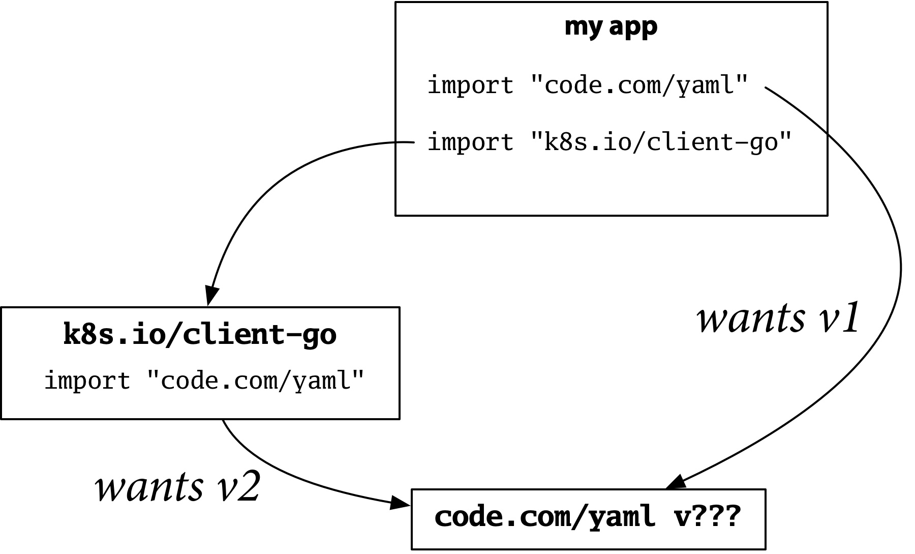 在 go 命令中釋出 vendor 目錄導致了對 vendoring 本身的更多實驗,我們意識到我們引入了一些問題。最嚴重的是我們丟失了包的唯一性。以前,在任何給定的構建過程中,一個匯入路徑可能出現在許多不同的包中,並且所有匯入都指向同一個目標。現在隨著 vendoring,不同包中的相同匯入路徑可能指向該包的不同 vendor 副本,所有這些都將出現在最終生成的二進位制檔案中。