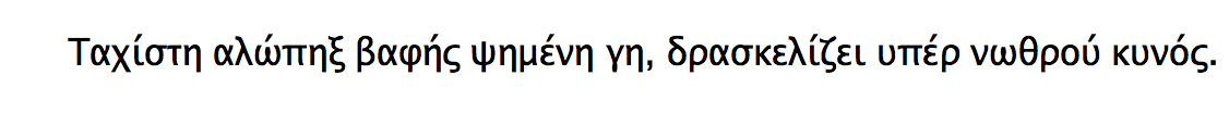 未列出希臘語版本。取而代之的是,來自 clagnut.com/blog/2380/#Greek 的全字母短句