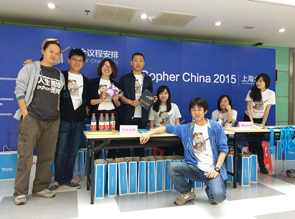 每位與會者都收到一個袋子,裡面裝有必備的 GopherChina T 恤、各種贊助商相關的資訊手冊、貼紙,以及偶爾出現的毛絨“玩偶”(但沒有毛絨絨的 Gopher)。至少有一個第三方供應商在推銷技術書籍,其中包括幾本 Go 原創(非英文翻譯)書籍。