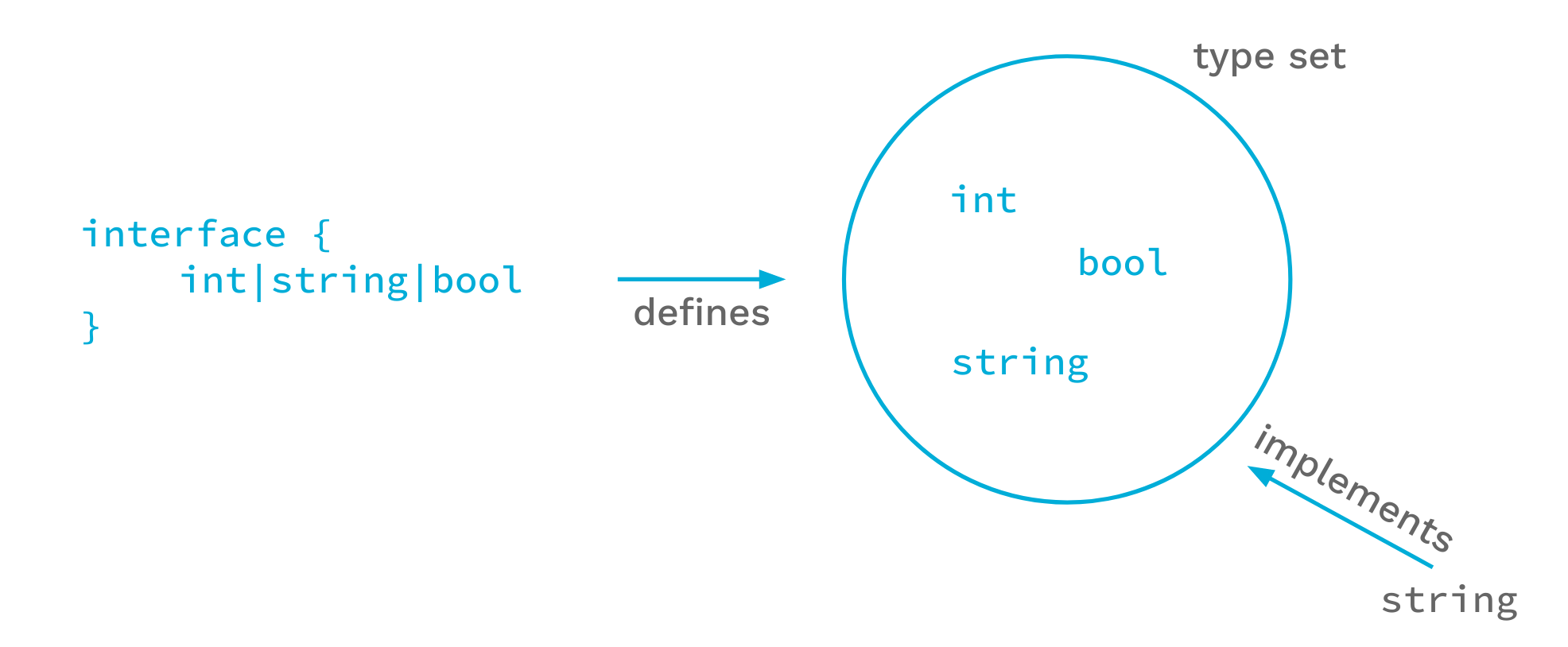 但另一種看待方式是說介面定義了一個型別集,即實現這些方法的型別。從這個角度來看,任何屬於介面型別集的型別都實現了該介面。