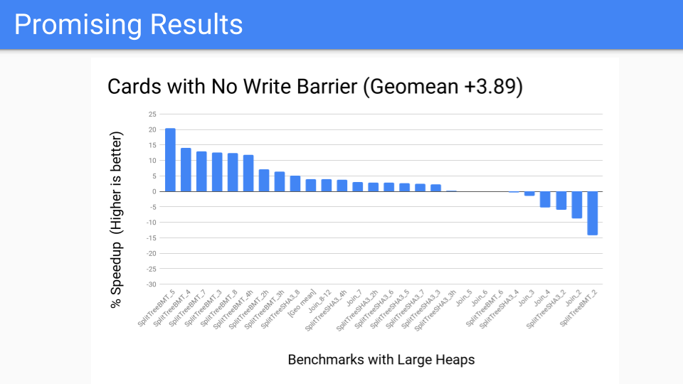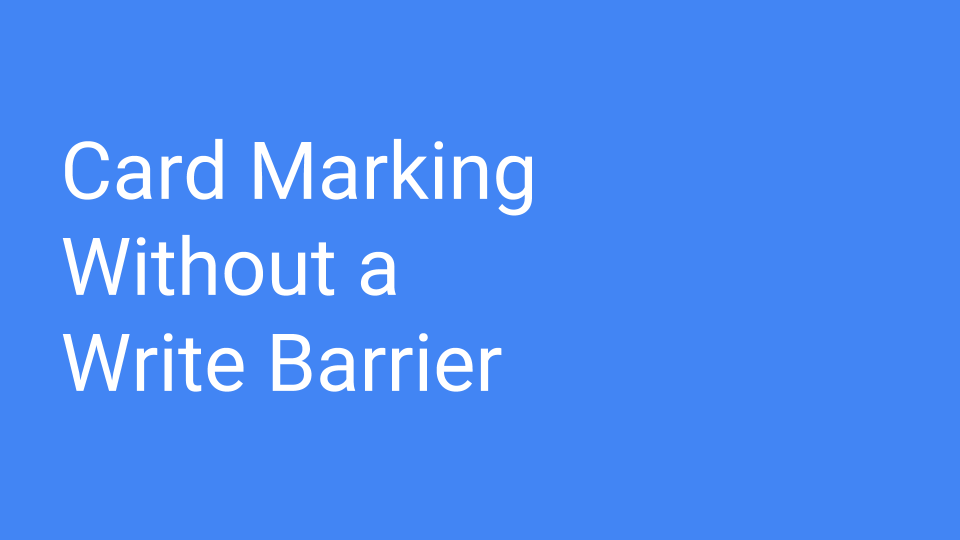 這個想法是,您在每個卡片中維護一個成熟指標的雜湊。如果將指標寫入卡片,雜湊值將發生變化,卡片將被視為已標記。這將用雜湊的成本來替代寫屏障的成本。