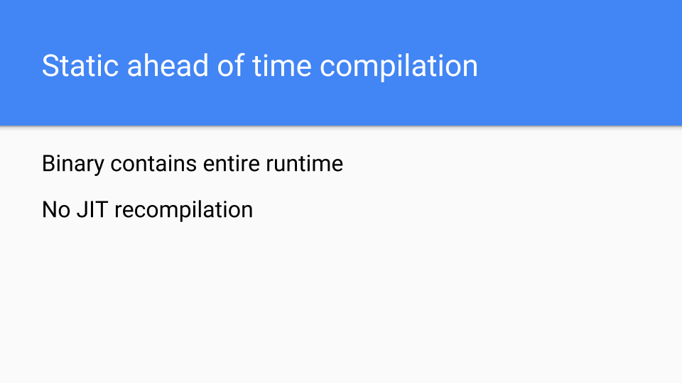 我們還有一個提前編譯系統,所以二進位制檔案包含了整個執行時。