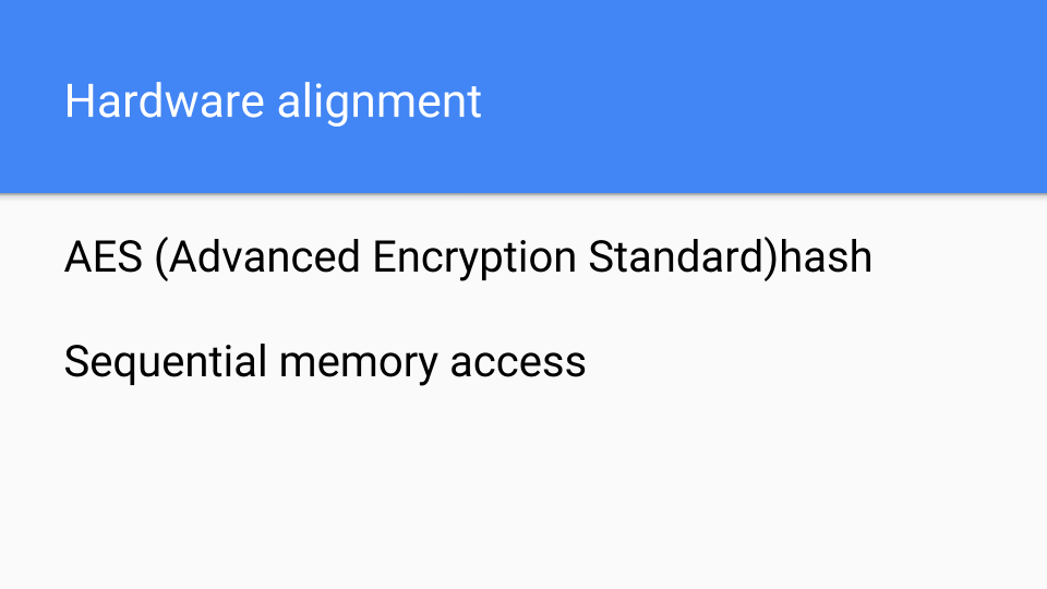 今天的現代架構擁有 AES(高階加密標準)指令。其中一條指令可以執行加密級別的雜湊,透過加密級別的雜湊,如果我們遵循標準的加密策略,就不必擔心雜湊衝突。所以雜湊不會花費我們太多成本,但我們必須載入我們要雜湊的內容。幸運的是,我們是順序遍歷記憶體,所以我們獲得了非常好的記憶體和快取效能。如果您有一個 DIMM 並且訪問順序地址,那麼這就是一個勝利,因為它們比訪問隨機地址更快。硬體預取器也會啟動,這也會有所幫助。總之,我們有 50 年、60 年設計硬體來執行 Fortran、C 和 SPECint 基準測試的經驗。硬體能快速執行這類東西也就不足為奇了。