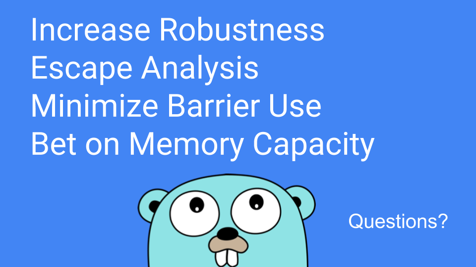 我們還將研究如何改進我們已經相當不錯的逃逸分析,並針對 Go 的面向值程式設計進行最佳化。不僅在程式設計方面,還在我們為使用者提供的工具方面。
