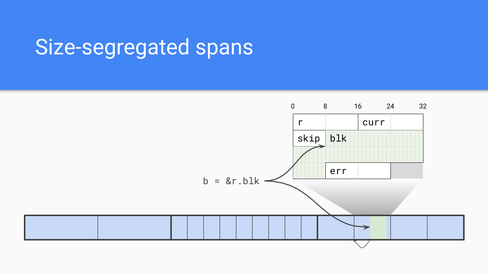 垃圾回收器需要有效地找到物件的起始位置。如果知道 Span 中物件的大小,它只需向下取整到該大小,那就是物件的起始位置。