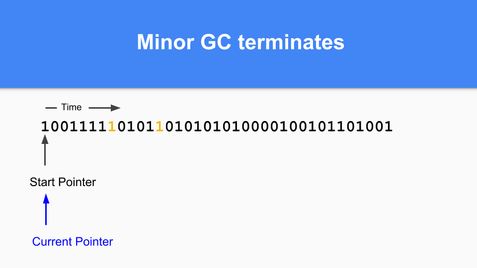 最後,要完成您的分代 GC 週期,只需將當前指標重置迴向量的開頭,然後繼續。所有未被該 GC 週期訪問的零都將被釋放並可重用。正如你們中的許多人所知,這被稱為“粘性位”(sticky bits),是由 Hans Boehm 和他的同事發明的。