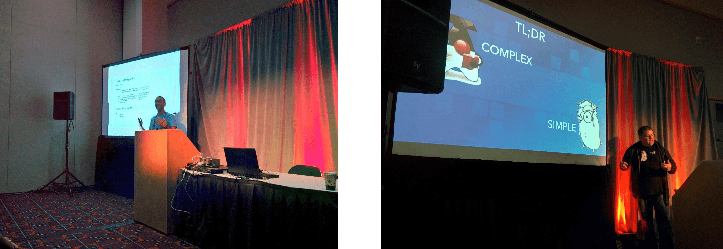 Matt Stine 在他的演講《一個正在康復的 Java 開發者學習 Go》中分享了他從 Java 轉向 Go 的經驗,而Steve Francia 則介紹了《使用 MongoDB 和 Go 進行無痛資料儲存》。Steve 還介紹了《面向物件程式設計師的 Go》,他在其中解釋瞭如何在 Go 中實現一些面向物件的概念。