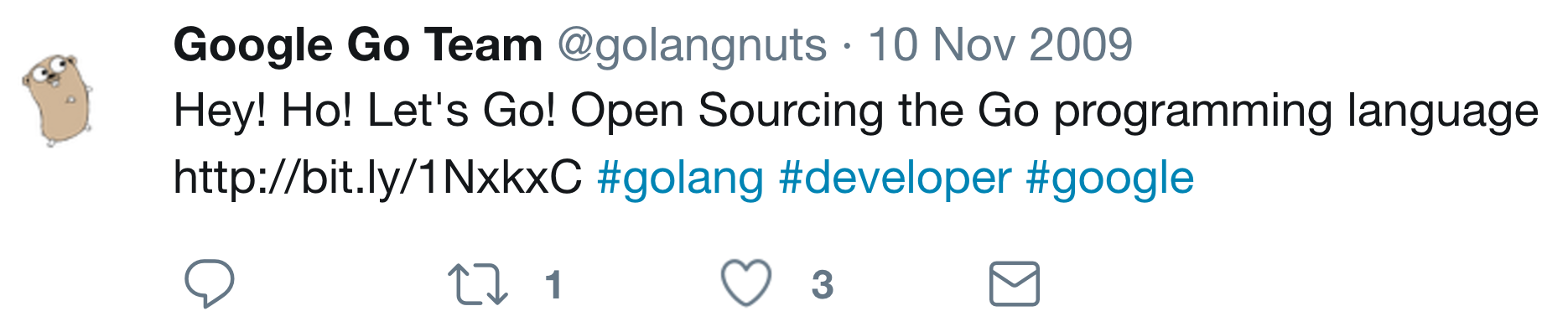 第二年,Ian Lance Taylor 和我加入了團隊,我們五人一起構建了兩個編譯器和一個標準庫,最終於 2009 年 11 月 10 日開源釋出。
