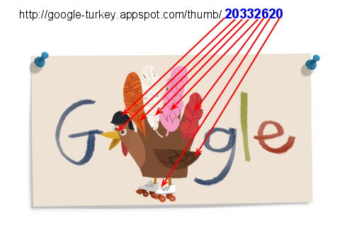 我最近有機會參與了一個小型但備受矚目的“20% 專案”:2011 年感恩節 Google Doodle。這個塗鴉透過隨機組合不同風格的頭部、翅膀、羽毛和腿部來製作一隻火雞。使用者可以透過點選火雞的不同部位來自定義它。這種互動性是透過 JavaScript、CSS 和當然還有 HTML 的組合在瀏覽器中實現的,可以即時生成火雞。