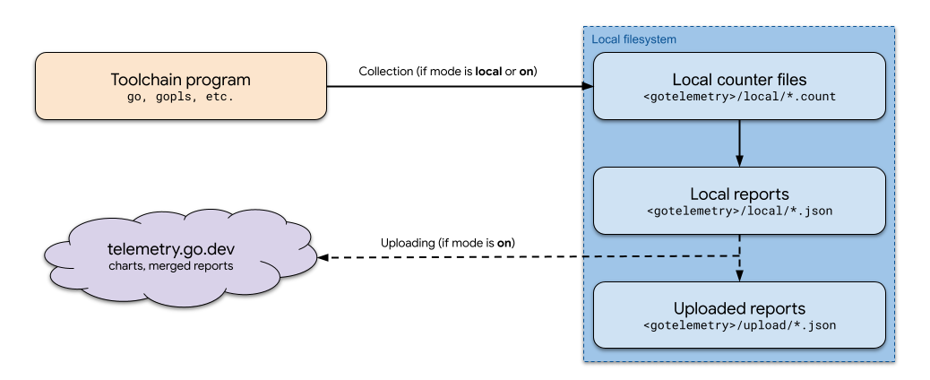 預設情況下,遙測資料僅保留在本地計算機上,但使用者可以選擇上傳經批准的遙測資料子集到 telemetry.go.dev。上傳的資料有助於 Go 團隊通過了解使用情況和故障來改進 Go 語言及其工具。